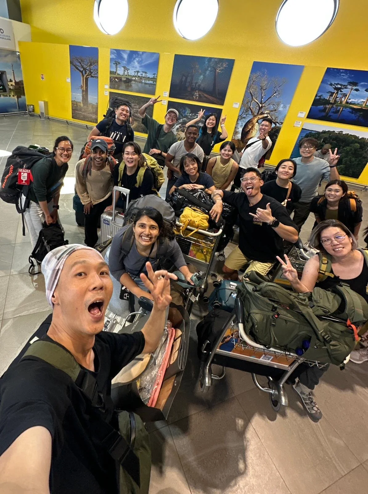 - Wei Ren, our 15th member was floating around in the departure hall because he rushed in without reading our group chat, and three other members were on their own flight arrangements to Antananarivo.
