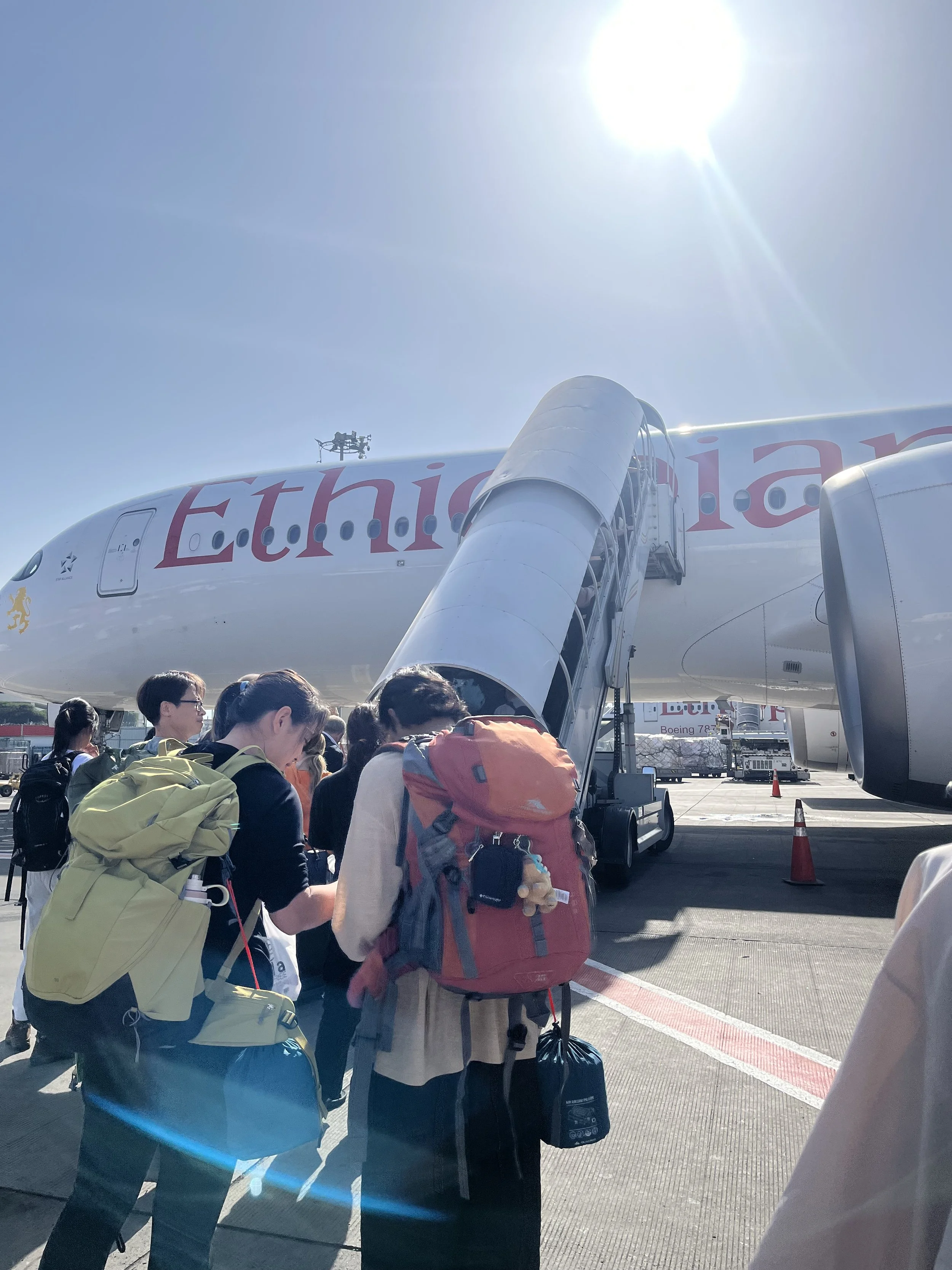 Finally boarding our second flight, one that will ferry us from Ethiopia to Antananarivo!